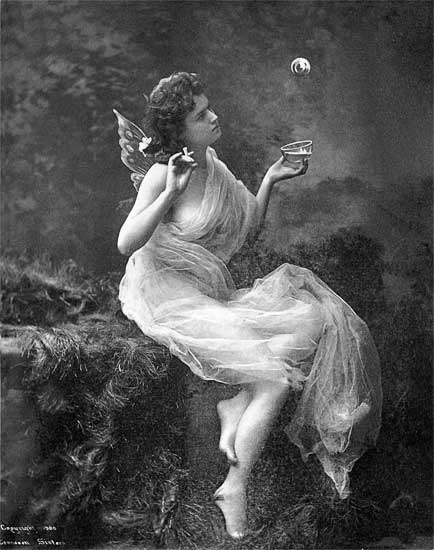 The images, in the order in which they appear in the slideshow are: Untitled image of a woman with a corn leaf, courtesy Helen Joy; and “Pigs in Clover”; “Country Gossip”; “A Hay Seed”; and the untitled image of a woman blowing bubbles, all by Tonnesen Sisters and all shown elsewhere on this website.